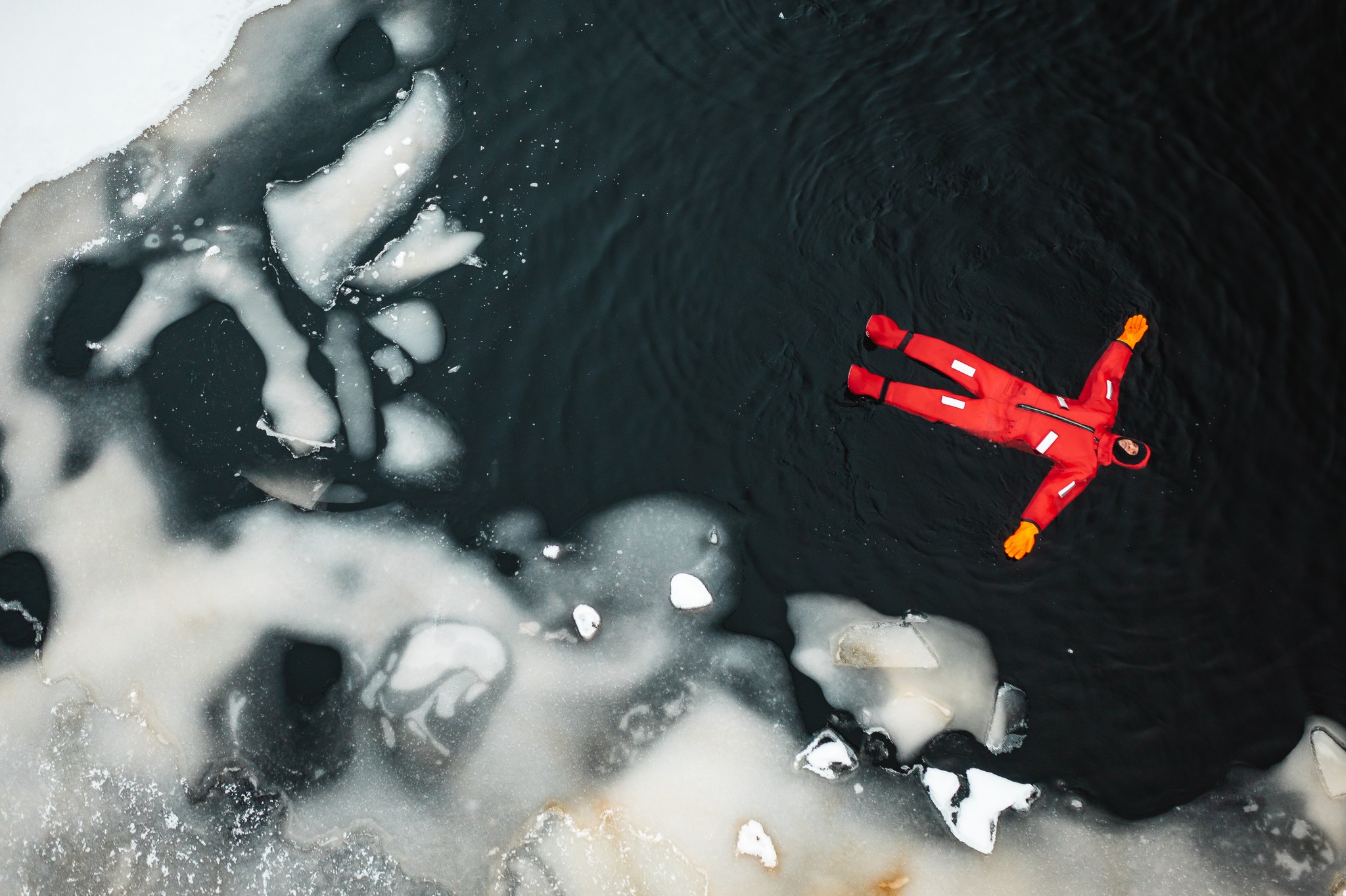 Erlebt ein außergewöhnliches Wintererlebnis in Lappland: Beim Aurora Ice Floating lasst ihr euch in einem zugefrorenen See treiben – umgeben von Eis und unter dem weiten Himmel des Nordens.